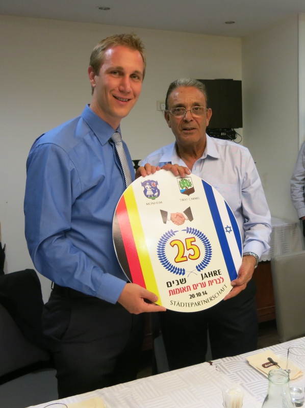 Auf Seiten der israelischen Partnerstadt Tirat Carmel wurde vor allem das besondere Engagement von Stadtdirektor Shmulik Katoni, dem früheren Bürgermeister und Amtskollegen von Ingeborg Friebe Reuven Biener sowie von Eli Fedida, dem Träger des Ehrenrings der Stadt Monheim am Rhein, hervorgehoben. Fedida betreut seit über 25 Jahren die israelischen Schulklassen bei ihren Deutschlandbesuchen und war auch in diesem Sommer bei Jubiläumsbesuch in Monheim mit dabei.