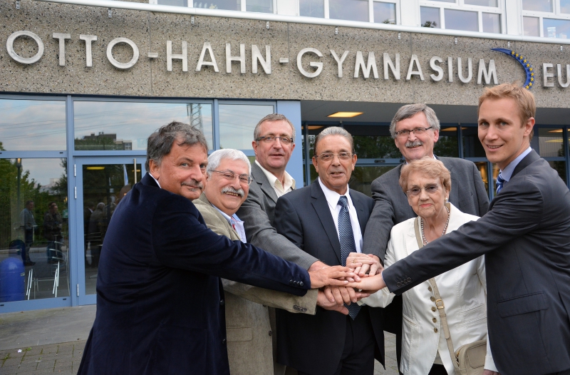 Die 1989 begründete Städtepartnerschaft zwischen Tirat Carmel und Monheim am Rhein wird bis heute ganz wesentlich von einem regen Schüleraustausch und dem Engagement des „Arbeitskreises Partnerschaft mit Israel e. V.“ getragen, dessen Vorsitzender OHG-Direktor Dr. Hagen Bastian ist. Inzwischen besuchten bereits über 600 Schülerinnen und Schüler beider Seiten die jeweilige Partnerstadt. Viele hieraus hervorgegangene Freundschaften existieren bis heute. Diese persönlichen Begegnungen könne kein Blick in die Zeitung, kein Fernsehen und kein Internet ersetzten, betonte Bürgermeister Daniel Zimmermann in seiner Ansprache. Amtskollege Arie Tal, der diese deutsch-israelische Freundschaft bereits in der dritten Amtsperiode begleitet, zeigte sich mit Blick auf das bislang Erreichte ebenfalls bewegt, sprach von einer großen Ehre, einem auch für ihn persönlich ganz besonderen Abend und lud Bürgermeister Daniel Zimmermann seinerseits zu einem Jubiläumsbesuch nach Israel ein.