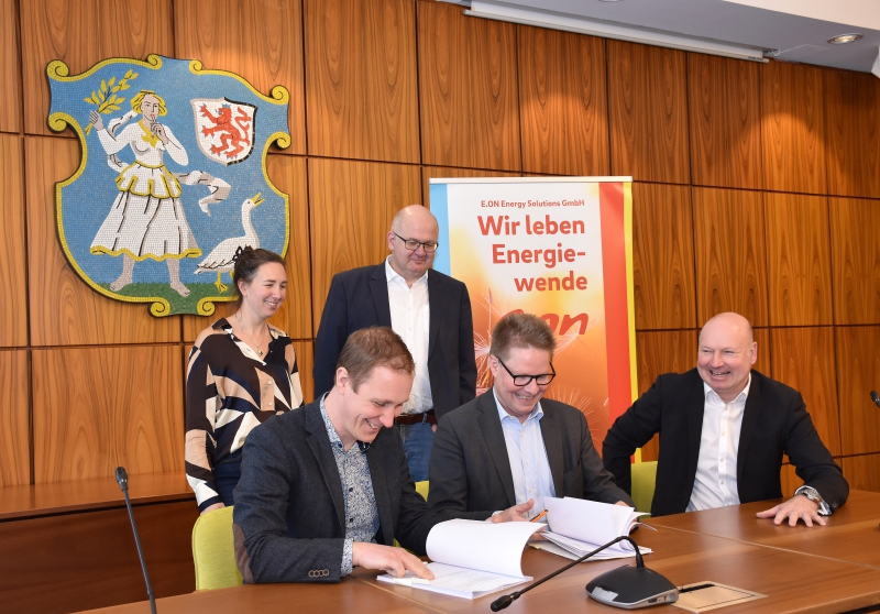 Die Vereinbarung beinhaltet dabei auch verbindliche Investitionen durch E.ON in die Klimaneutralität in Höhe von mindestens 5 Millionen Euro. Die gemeinsame Unterzeichnung des neuen und bis Ende 2045 laufenden Vertrags, der die Nutzung öffentlicher Flächen zum Leitungsbetrieb gestattet, fand am 7. März im Rathaus statt.