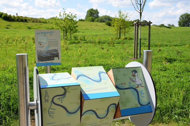 Essbare Kräuter wiegen sich im Wind, Insekten krabbeln über das Gras und durch die Luft summen einige Bienen. Auf dem Naturerlebnispfad im Landschaftspark Rheinbogen lernen Besucher die hiesige Flora und Fauna von ihrer schönsten Seite kennen. Am Freitag, 12. Mai, hat Bürgermeister Daniel Zimmermann die ersten vier Stationen eröffnet. Schautafeln, Bilderrätsel und Drehscheiben vermitteln die Themen Wildkräuter, Feuchtbiotop, Bienen und Rheinverlagerung.
